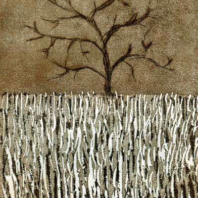 Collagraph to add Colour: The collagraph plate enhances an existing etching plate and brings this mediocre print to life.